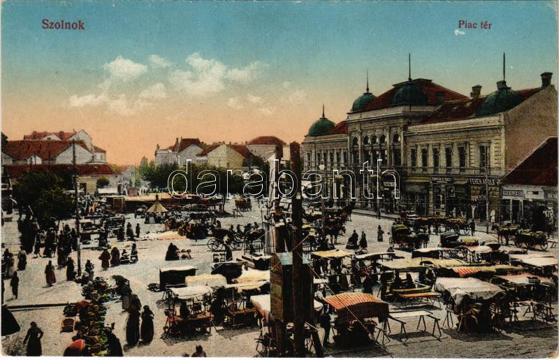 Szolnok, Piac tér, Rosenzveig Ede, Fehér Adolf, Koppán György üzlete. ... https://www.darabanth.com/de/441-Fernauktion/441.0/Ansichtskarten/Ungarn~1500009/Szolnok-Piac-ter-Rosenzveig-Ede-Feher-Adolf-Koppan-Gyorgy-uzlete-Vasuti-levelezolaparus~II2902862