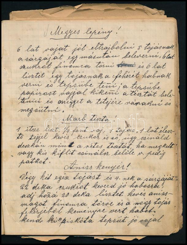 1913-1941: Kézzel írt, többnyire süteményeket tartalmazó receptgyűjtem... https://www.darabanth.com/de/441-Fernauktion/441.0/Bucher/Bucher-Gastronomie-und-Gartnerei~500040/1913-1941-Kezzel-irt-tobbnyire-sutemenyeket-tartalmazo-receptgyujtemeny-kb-60-oldalon~II2905233