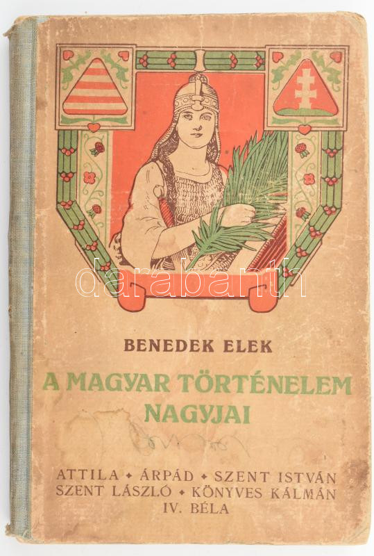 Benedek Elek: Nagy magyarok élete. Attila - Árpád - Szent István - Szent László - Könyves Kálmán - IV. Béla. Bp., 1914, Athenaeum, IV+152 p. Második kiadás. Kiadói illusztrált félvászon-kötés, kissé viseltes, foltos borítóval, belül nagyrészt ép állapotban, egy-két kissé sérült lappal.