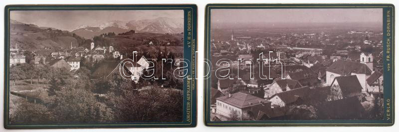 Beschreibung: cca 1910 Dornbirn (Ausztria Vorarlberg) város látképei, 2 db keményhátú fotó, Dornbirn, Fr. Rusch, 11x16 cmx2