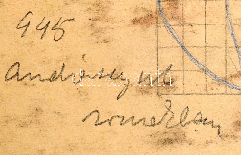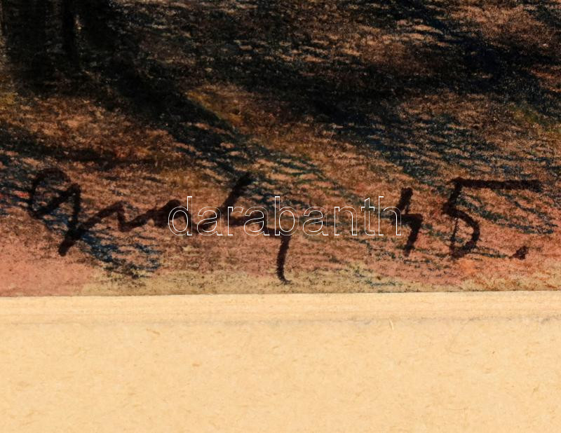 Gráber Margit (1896-1993): Budapest, az Andrássy út romokban az ostrom után, 1945. Pasztell, papír, jelezve balra lent, hátoldalán autográf felirattal. Apró lapszéli szakadással. Paszpartuban. 43×61 cm.