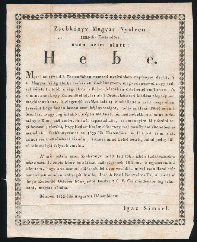 1922 Hebe Igaz Sámuel könyvének két nyelvű hirdetménye 19x25 cm https://www.darabanth.com/de/441-Fernauktion/441.0/Kunst-Dokumente-andere-Sammelgebiete/Drucksachen~500055/1922-Hebe-Igaz-Samuel-konyvenek-ket-nyelvu-hirdetmenye-19x25-cm~II2905486