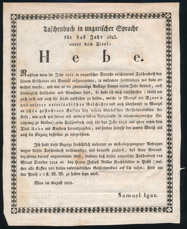 Beschreibung: 1922 Hebe Igaz Sámuel könyvének két nyelvű hirdetménye 19x25 cm