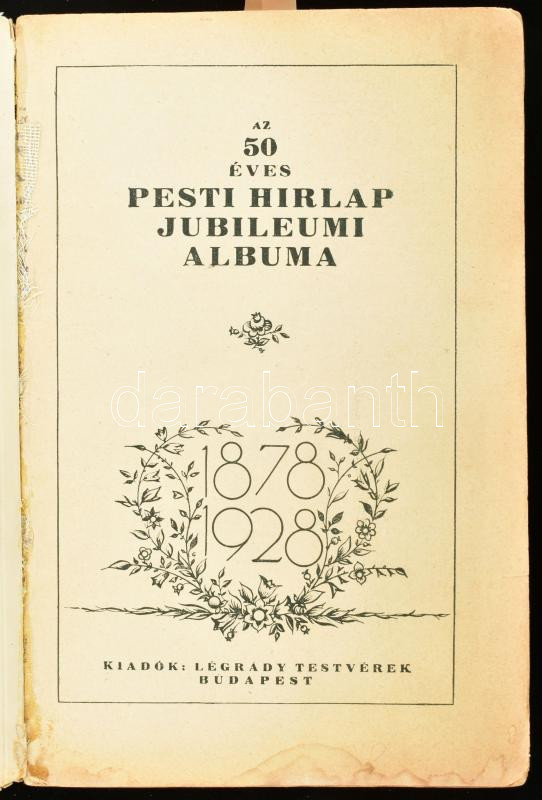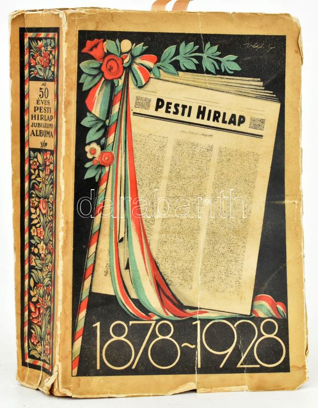 1928 Az 50 éves Pesti Hirlap jubileumi albuma 1878-1928. Bp., 1928, Légrády, 1072 p. Szövegközi és egészoldalas képekkel rendkívül gazdagon illusztrált. A borító Végh Gusztáv munkája. Kiadói illusztrált papírkötés, szakadozott borítóval.