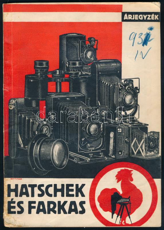 1931 Hatschek és Farkas fényképezőgép és fotócikk képes árjegyzéke, sé... https://www.darabanth.com/de/441-Fernauktion/441.0/Kunst-Dokumente-andere-Sammelgebiete/Drucksachen~500055/1931-Hatschek-es-Farkas-fenykepezogep-es-fotocikk-kepes-arjegyzeke-serulessel-80p~II2902610