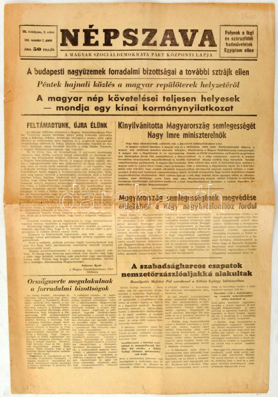 1956 Népszava 1956. nov. 2-i száma, a címlapon a forradalom híreivel, ... https://www.darabanth.com/de/441-Fernauktion/441.0/Kunst-Dokumente-andere-Sammelgebiete/Drucksachen~500055/1956-Nepszava-1956-nov-2-i-szama-a-cimlapon-a-forradalom-hireivel-6-p~II2903983
