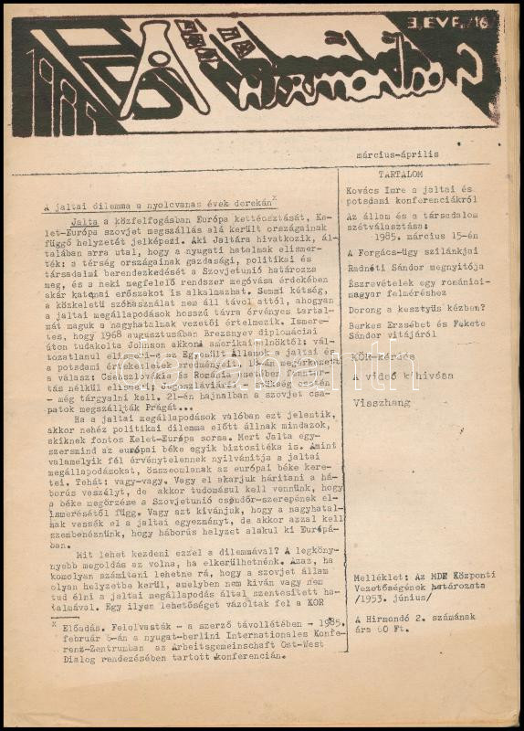 1985 A Hírmondó c. szamizdat kiadvány 1985. március-áprilisi száma, fű... https://www.darabanth.com/de/441-Fernauktion/441.0/Kunst-Dokumente-andere-Sammelgebiete/Drucksachen~500055/1985-A-Hirmondo-c-szamizdat-kiadvany-1985-marcius-aprilisi-szama-fuzes-nelkul-56-p~II2901903