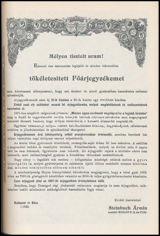 Beschreibung: Steinbuch Ármin gyógyszerészeti gyár reklám kiadványának facsimile kiadása 143p