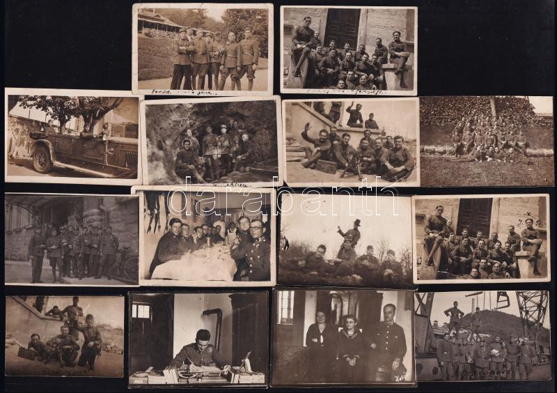 Beschreibung: cca 1930 Eger és környéke, katonai fotók (katonazenészek géppuskával, járművekkel, stb.), össz. 22 db, feliratozva, vegyes méretben és állapotban