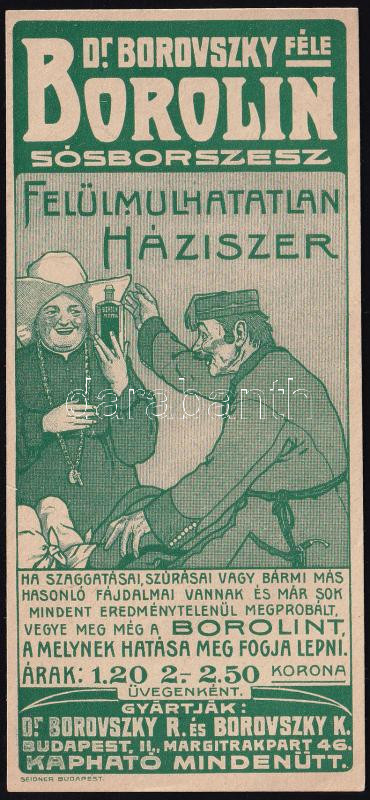 Dr. Borovszky-féle Borolin sósborszesz számolócédula https://www.darabanth.com/de/441-Fernauktion/441.0/Kunst-Dokumente-andere-Sammelgebiete/Werbungen~500026/Dr-Borovszky-fele-Borolin-sosborszesz-szamolocedula~II2898659