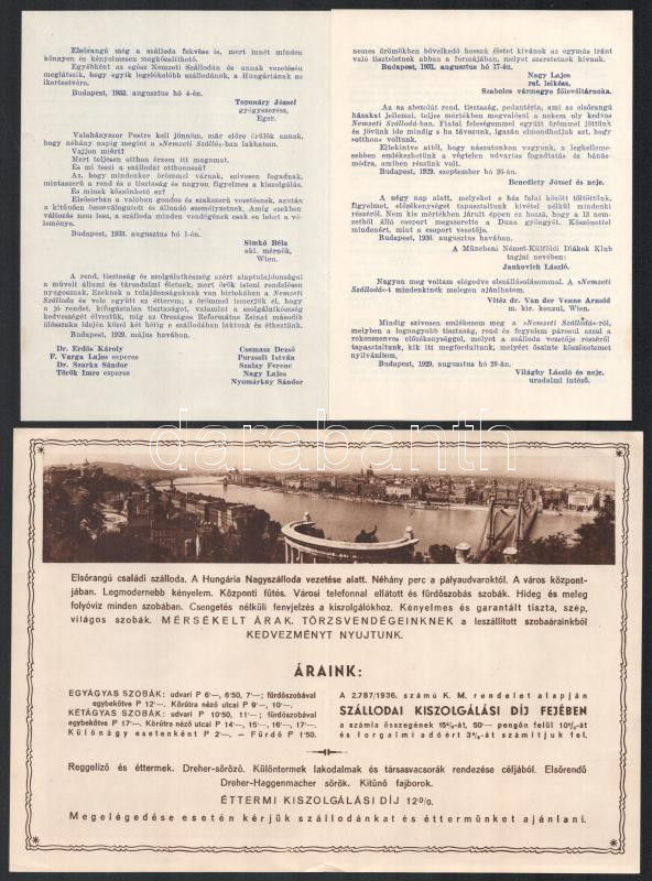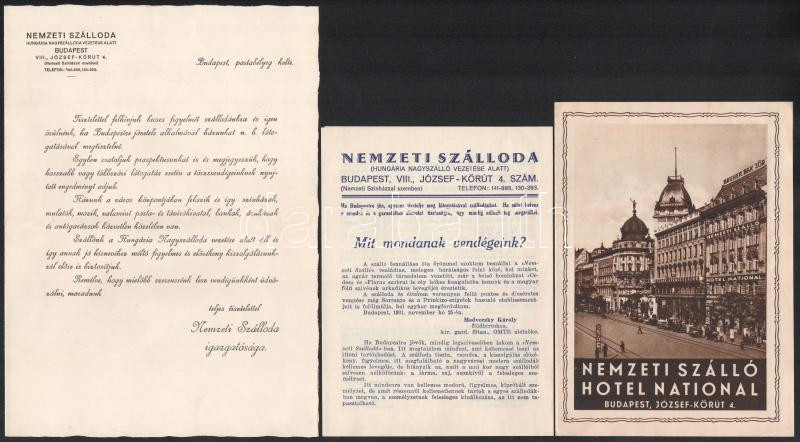 Beschreibung: cca 1940 Nemzeti Szálloda képes ismertető és két reklám nyomtatvány