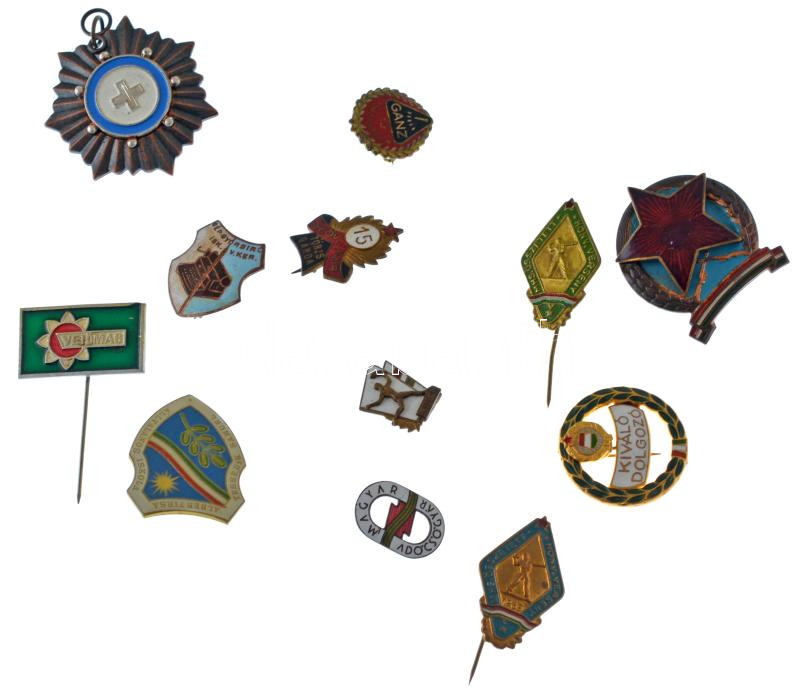 12db-os vegyes kitűző, jelvény, sapkajelvény tétel, közte "Tessedik Sámuel Általános Iskola Albertirsa" műgyantás fém iskolajelvény T:XF