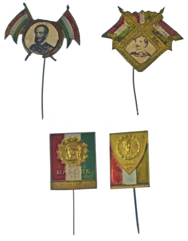 Beschreibung: ~1940. 4xklf Petőfi, Kossuth festett Cu lemezjelvény T:XF,VF