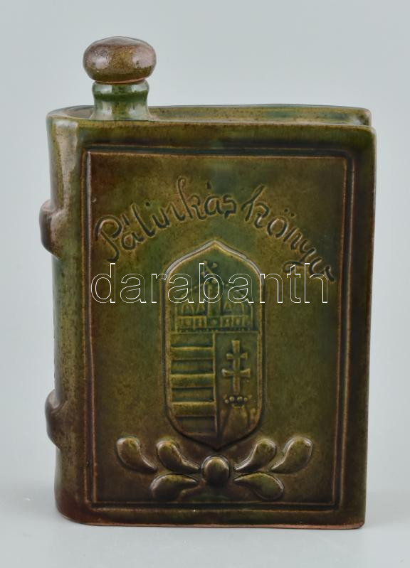 Beschreibung: Ambrus Attila: Pálinkás könyv. Címeres, mázas kerámia butéla, Jelzett, hibátlan 20 cm