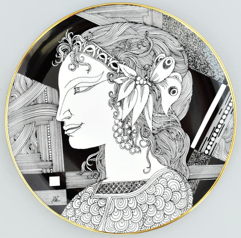 Hollóházi Szász Endre tervezte falitányér, matricás, jelzett, hibátlan... https://www.darabanth.com/de/441-Fernauktion/441.0/Porzellan-Keramik-Glass/Porzellan~500006/Hollohazi-Szasz-Endre-tervezte-falitanyer-matricas-jelzett-hibatlan-d-24-5-cm~II2904519
