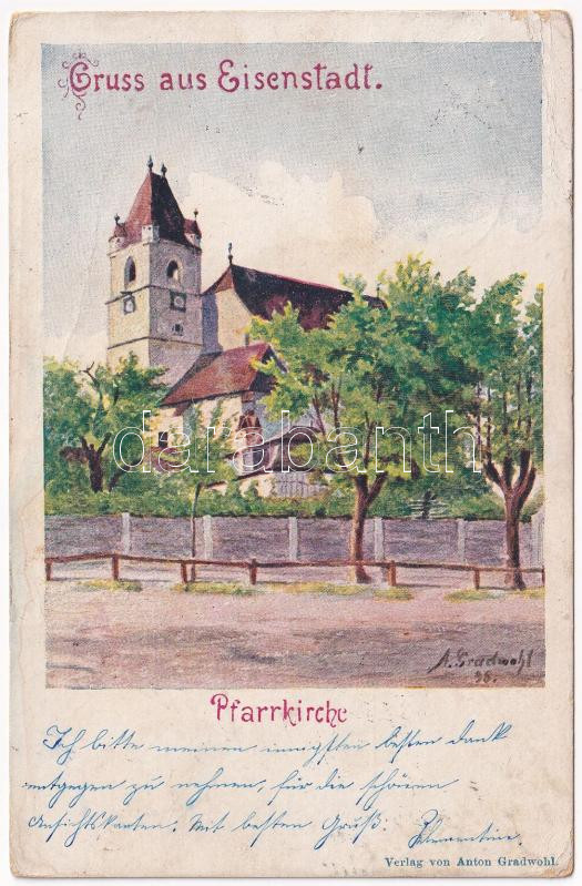 Beschreibung: 1899 (Vorläufer) Kismarton Eisenstadt; Pfarrkirche / templom / church s: Anton Gradwohl (Rb)