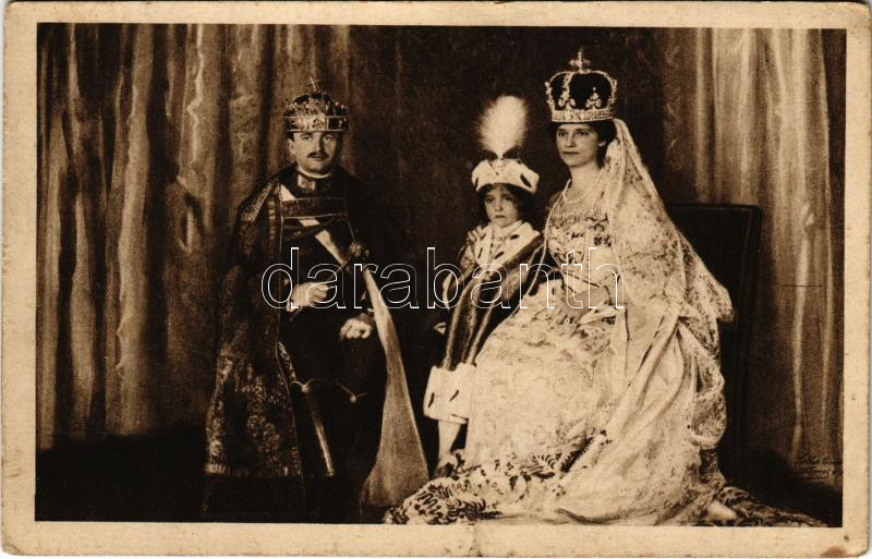1917 IV. Károly, Zita királyné és Ottó a trónörökös. Magyar Vöröskereszt Egylet Szeretetadomány osztálya / Charles I of Austria, Queen Zita and Crown Prince Otto (fa)