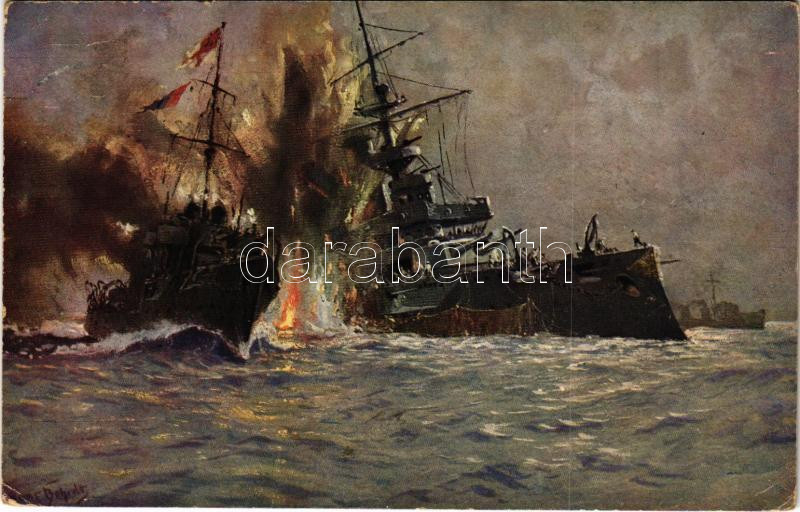 1915 Vernichtung des engl. Linienschiffes "Triumph" / WWI German Navy (Kaiserliche Marine) art postcard, destroyed British battleship s: Prof. Hans Bohrdt (EK)