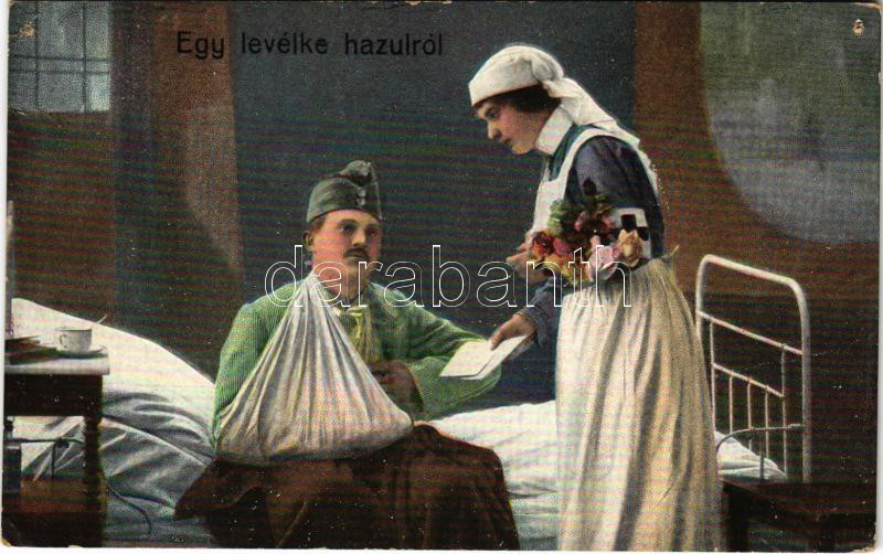 Beschreibung: 1915 Egy levélke hazulról / WWI Austro-Hungarian K.u.K. military art postcard, letter from home, injured soldier with nurse (lyukak / pinholes)