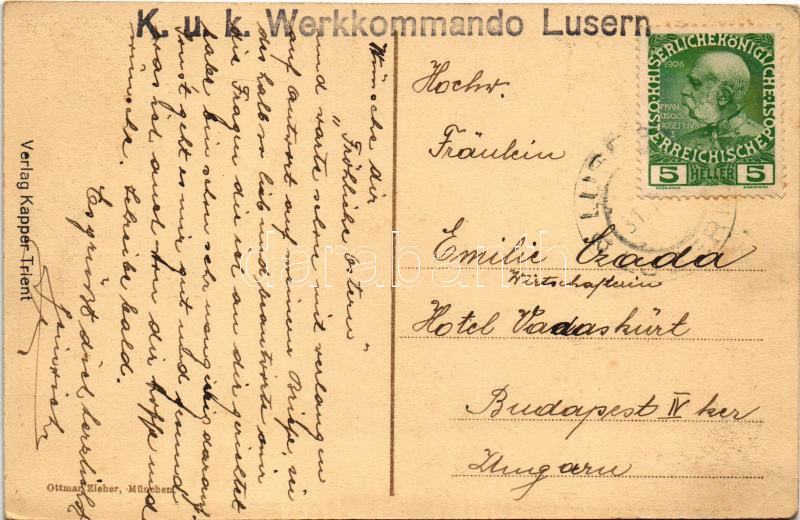 Verlag Kapper Trient / WWI Austro-Hungarian K.u.K. military art postca... https://www.darabanth.com/de/442-Fernauktion/442.0/Ansichtskarten/Militaria~2000084/Verlag-Kapper-Trient-WWI-Austro-Hungarian-KuK-military-art-postcard-plus-KuK-Werkkommando-Luse~II2914366