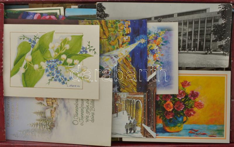Beschreibung: Egy doboz főleg MODERN képeslap vegyesen: városok és motívumok / A box of mostly modern postcards: town-views and motives
