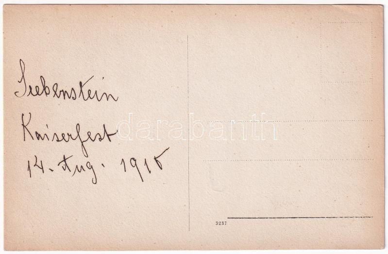 1910 Seebenstein, Kaiserfest, Hubertus Schank! XVIII., Kellereien der ... https://www.darabanth.com/de/442-Fernauktion/442.0/Ansichtskarten/Osterreich~2000021/1910-Seebenstein-Kaiserfest-Hubertus-Schank-XVIII-Kellereien-der-Steiermarkischen-Sparkasse-~II2909475