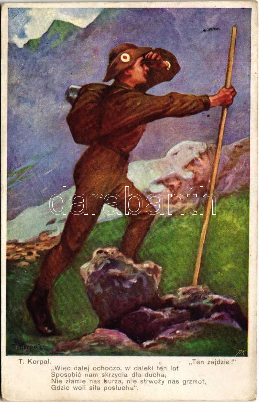 Beschreibung: 1917 Ten zajdzie! / Lengyel cserkészlap, cserkésztársainak küldte a levélíró a frontról / Polish boy scout art postcard s: T. Korpal
