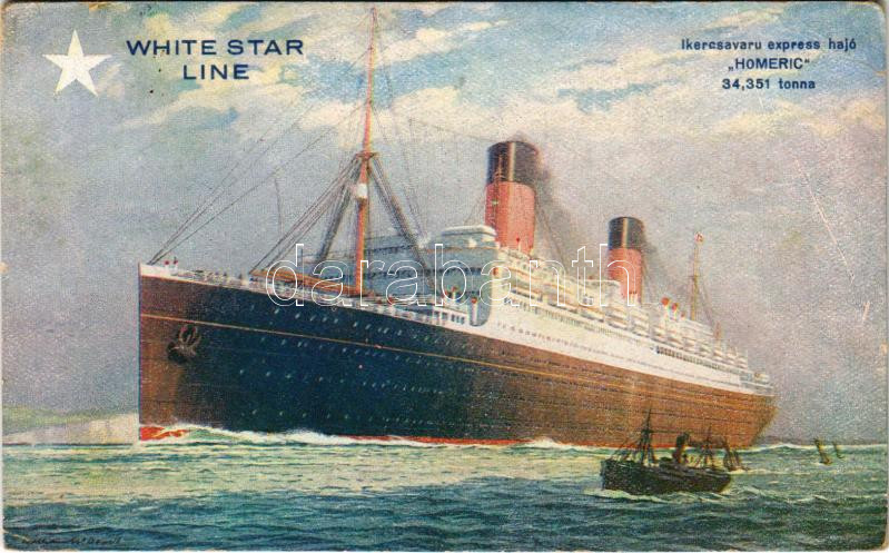 White Star Line ikercsavarú express hajó "HOMERIC" / White S... https://www.darabanth.com/de/442-Fernauktion/442.0/Ansichtskarten/Schiffe~2000077/White-Star-Line-ikercsavaru-express-hajo-HOMERIC-White-Star-Line-ocean-liner-steamship-EB~II2913107