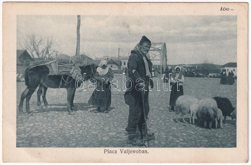 Valjevo, piac. A cs. és kir. szerbiai főkormányzóság, a háborúban elesett osztrák-magyar katonai árva és özvegyalapja, valamint Belgrád város szegényei havára Serie Nr. 4. / market (EK)