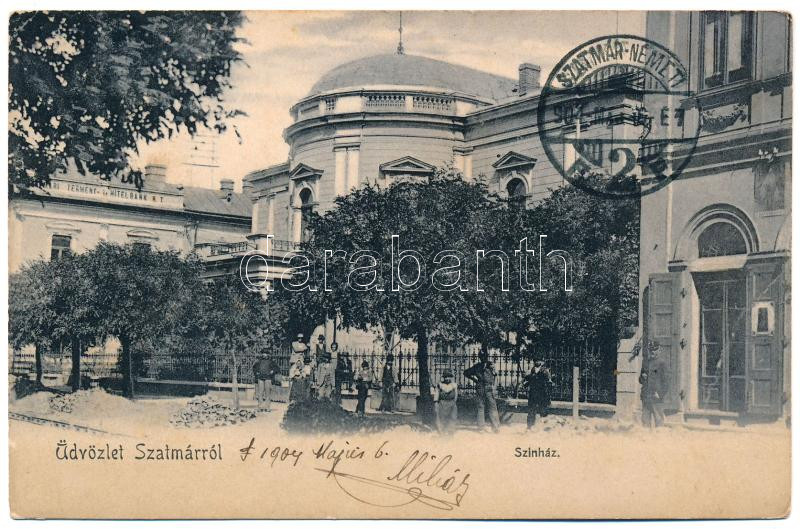 1904 Szatmárnémeti, Szatmár, Satu Mare; színház. Lövy Miksa kiadása / ... https://www.darabanth.com/de/442-Fernauktion/442.0/Ansichtskarten/Siebenburgen~2000007/1904-Szatmarnemeti-Szatmar-Satu-Mare-szinhaz-Lovy-Miksa-kiadasa-theatre-EK~II2893616