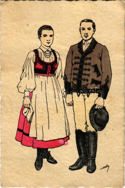 Beschreibung: 1943 Kecsetkisfalud, Satu Mic; Székely népviselet / Costumi popolari secleri / Transylvanian folklore art postcard s: Haáz (EB)