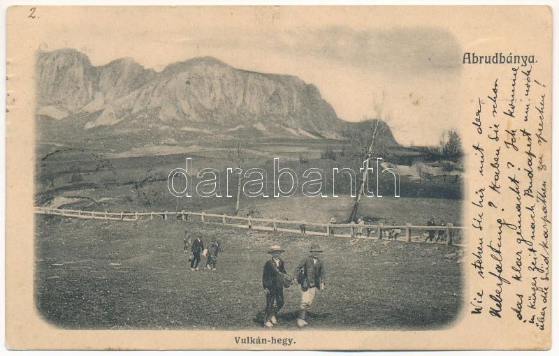 Abrudbánya, Abrud; Vulkán-hegy. Skalangya József kiadása / Vulcan (fa) https://www.darabanth.com/de/442-Fernauktion/442.0/Ansichtskarten/Siebenburgen~2000007/Abrudbanya-Abrud-Vulkan-hegy-Skalangya-Jozsef-kiadasa-Vulcan-fa~II2891066
