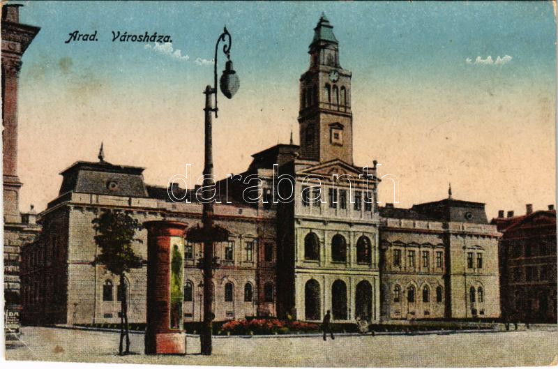 Arad, Városháza. Mandl J. kiadása / town hall (vágott / cut) https://www.darabanth.com/de/442-Fernauktion/442.0/Ansichtskarten/Siebenburgen~2000007/Arad-Varoshaza-Mandl-J-kiadasa-town-hall-vagott-cut~II2911302