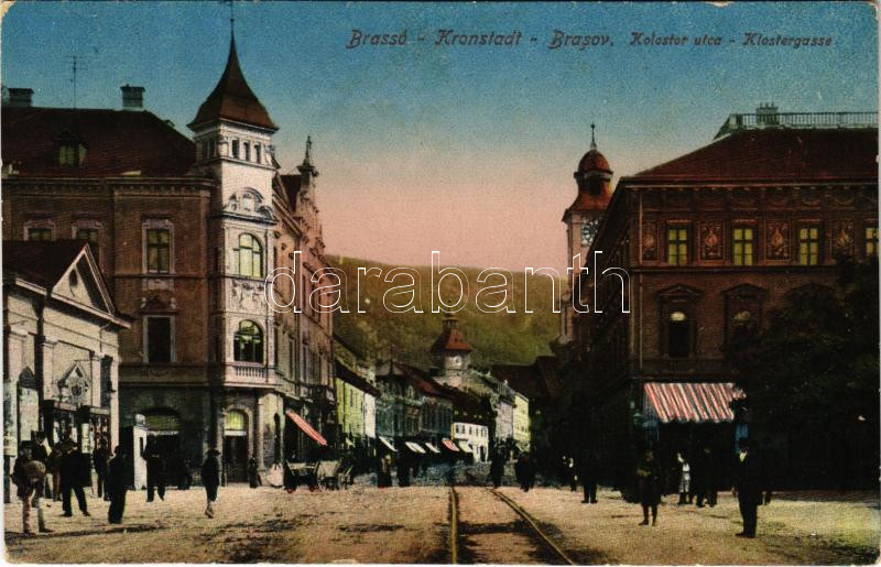 Brassó, Kronstadt, Brasov; Kolostor utca / Klostergasse / street view ... https://www.darabanth.com/de/442-Fernauktion/442.0/Ansichtskarten/Siebenburgen~2000007/Brasso-Kronstadt-Brasov-Kolostor-utca-Klostergasse-street-view-kopott-sarkak-worn-corners~II2890676