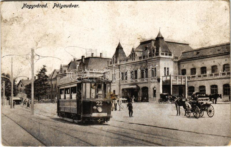 Nagyvárad, Oradea; Pályaudvar, vasútállomás, villamos / railway statio... https://www.darabanth.com/de/442-Fernauktion/442.0/Ansichtskarten/Siebenburgen~2000007/Nagyvarad-Oradea-Palyaudvar-vasutallomas-villamos-railway-station-tram-fa~II2887915