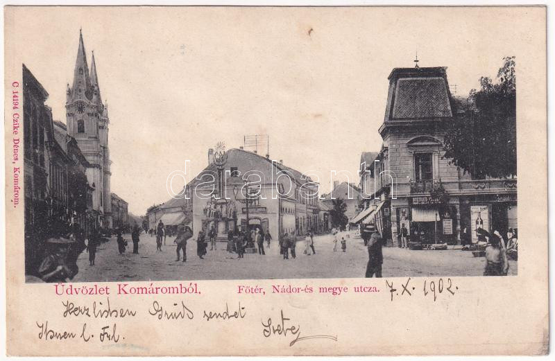 1902 Komárom, Komárnó; Fő tér, Nádor és Megye utca, Stettler és Mészár... https://www.darabanth.com/de/442-Fernauktion/442.0/Ansichtskarten/Slowakei~2000008/1902-Komarom-Komarno-Fo-ter-Nador-es-Megye-utca-Stettler-es-Meszaros-Andras-uzlete-~II2910606