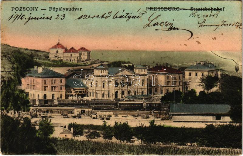 1910 Pozsony, Pressburg, Bratislava; Főpályaudvar, vasútállomás, vonat... https://www.darabanth.com/de/442-Fernauktion/442.0/Ansichtskarten/Slowakei~2000008/1910-Pozsony-Pressburg-Bratislava-Fopalyaudvar-vasutallomas-vonat-gozmozdony-Staatsbah~II2910318