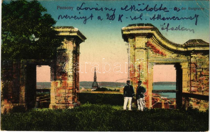 1917 Pozsony, Pressburg, Bratislava; várrom kapu, katonák. Vasúti leve... https://www.darabanth.com/de/442-Fernauktion/442.0/Ansichtskarten/Slowakei~2000008/1917-Pozsony-Pressburg-Bratislava-varrom-kapu-katonak-Vasuti-levelezolaparusitas-42-sz~II2911106