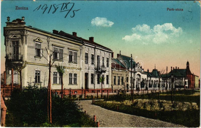 1918 Zsolna, Sillein, Zilina; Park utca. Vasúti levelezőlapárusítás 18... https://www.darabanth.com/de/442-Fernauktion/442.0/Ansichtskarten/Slowakei~2000008/1918-Zsolna-Sillein-Zilina-Park-utca-Vasuti-levelezolaparusitas-18-sz-1915-street-view~II2905929