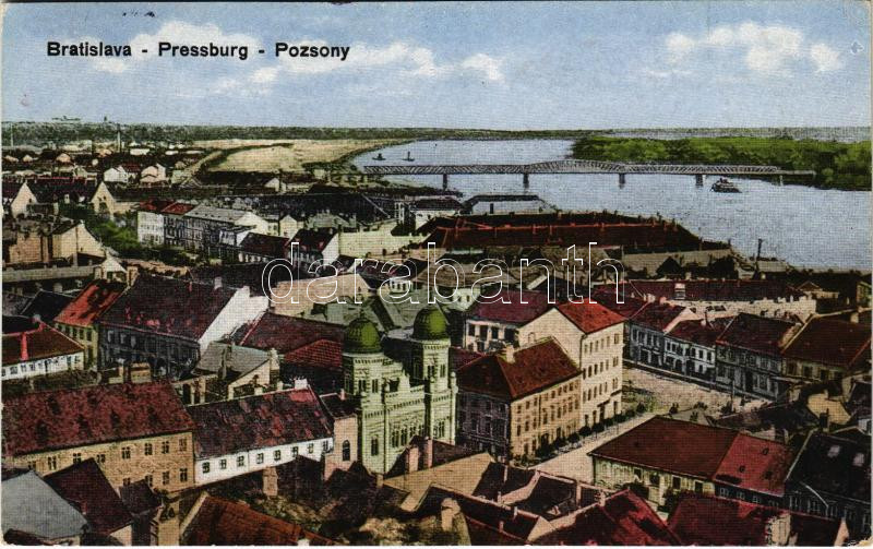 1930 Pozsony, Pressburg, Bratislava; látkép, zsinagóga, híd / general ... https://www.darabanth.com/de/442-Fernauktion/442.0/Ansichtskarten/Slowakei~2000008/1930-Pozsony-Pressburg-Bratislava-latkep-zsinagoga-hid-general-view-synagogue-bridge~II2908360