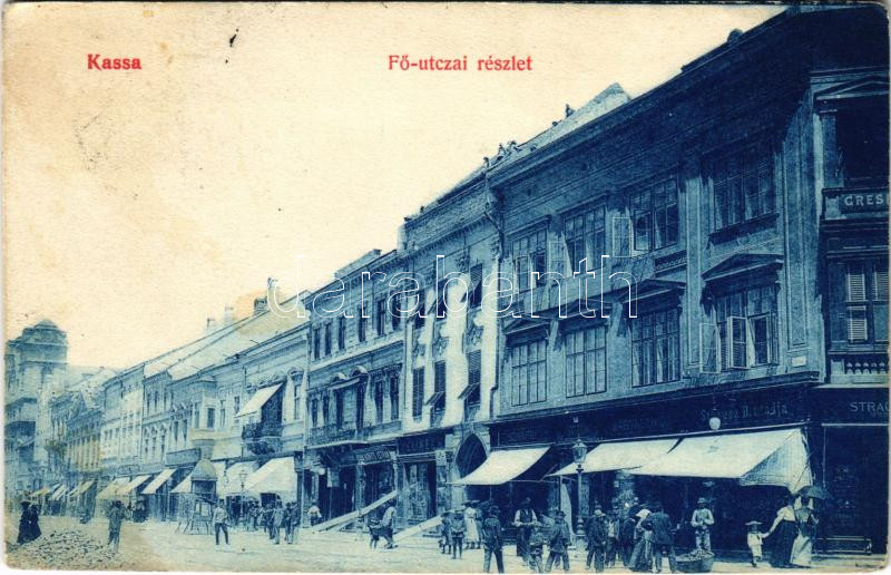 Kassa, Kosice; Fő utca, Jelinek, Strausz D. utódja, Steiner, Breitner ... https://www.darabanth.com/de/442-Fernauktion/442.0/Ansichtskarten/Slowakei~2000008/Kassa-Kosice-Fo-utca-Jelinek-Strausz-D-utodja-Steiner-Breitner-Mor-uzlete-main-street-~II2911050