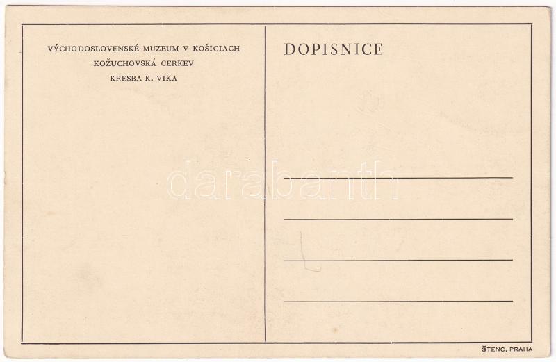 Körmös, Kozsuhócz, Kozuchovce; görögkeleti fatemplom. Rajz a kassai Kelet-szlovákiai Múzeumban / Kozuhovská cerkev, Vychodoslovenské múzeum v Kosiciach / wooden church s: K. Vika