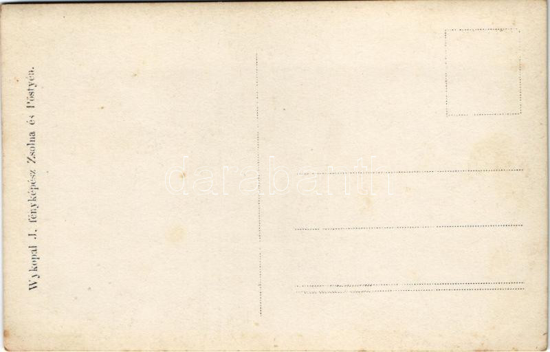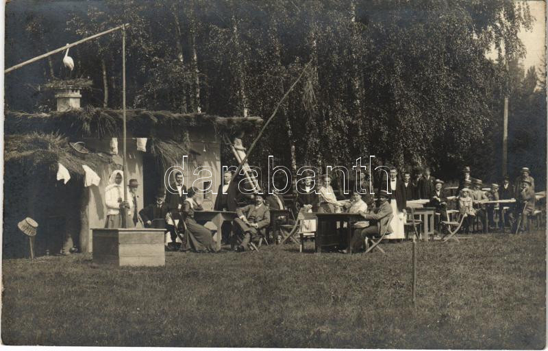 Pöstyén, Piestany; vendéglő, étterem, pincérek és vendégek, gólyafészek gólyával / inn, restaurant with guests and waiters, stork with nest. Wykopal J. fényképész (Zsolna és Pöstyén) photo