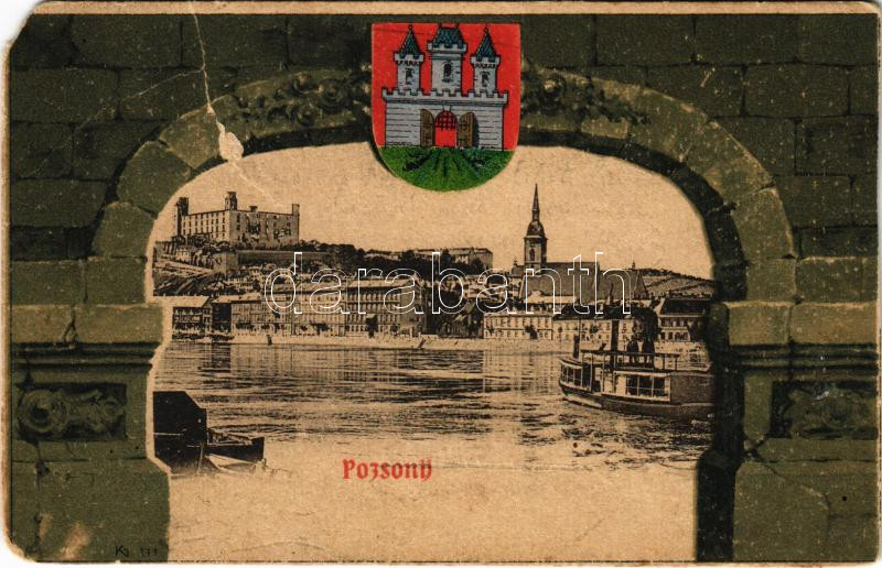 Pozsony, Pressburg, Bratislava; vár, gőzhajó. Címeres szecessziós kere... https://www.darabanth.com/de/442-Fernauktion/442.0/Ansichtskarten/Slowakei~2000008/Pozsony-Pressburg-Bratislava-var-gozhajo-Cimeres-szecesszios-keret-Holderer-Gusztav-kiad~II2912513