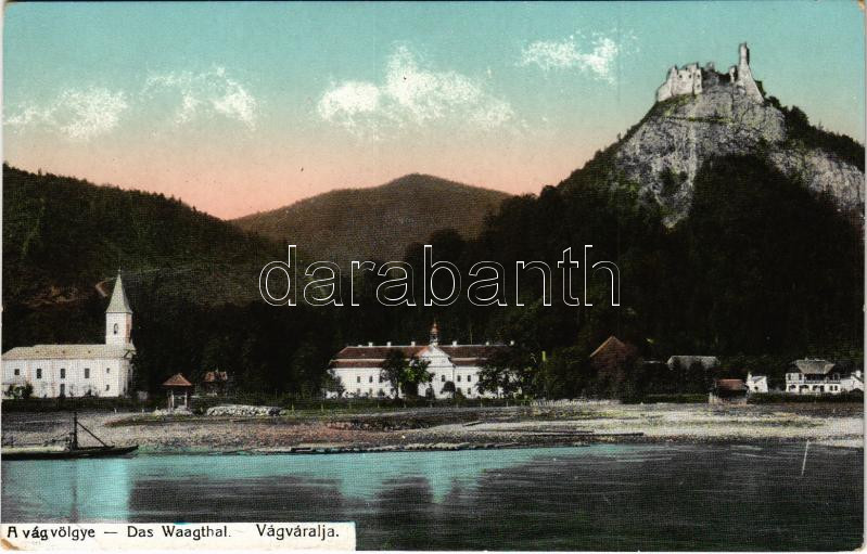 Vágváralja, Vág-Podhragy, Povazské Podhradie (Vágbeszterce, Povazská Bystrica); Podrágyvár, templom, kastély, Vágvölgy. Gansel Lipót 516. / castle, church in Váh Valley / Povazie, Povazsky hrad (Rb)
