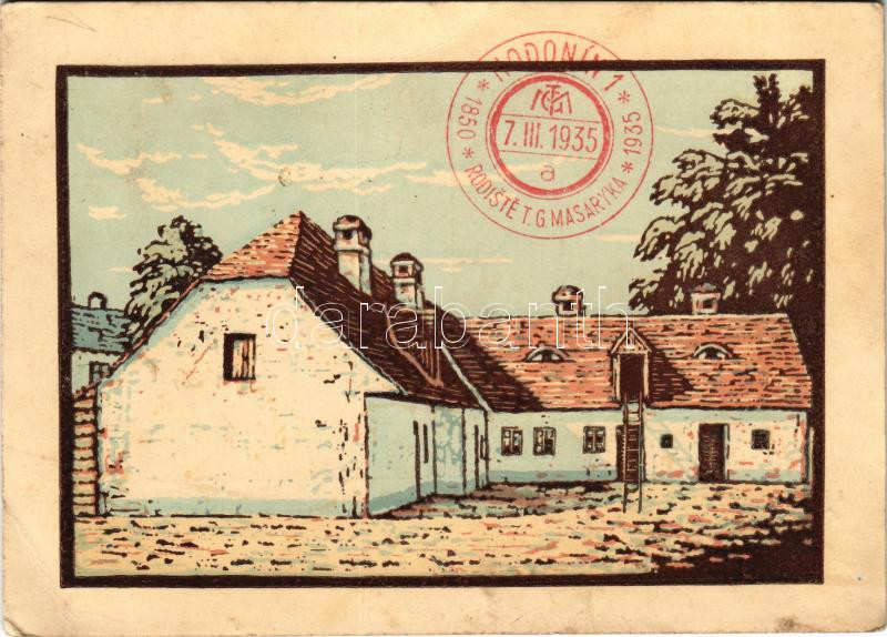 1935 Hodonín, Göding; Rodny domek pres. T. G. Masaryka / Birthplace of... https://www.darabanth.com/de/442-Fernauktion/442.0/Ansichtskarten/Tschechische-Republik~2000027/1935-Hodonin-Goding-Rodny-domek-pres-T-G-Masaryka-Birthplace-of-Czech-president-T-G-Masar~II2877986