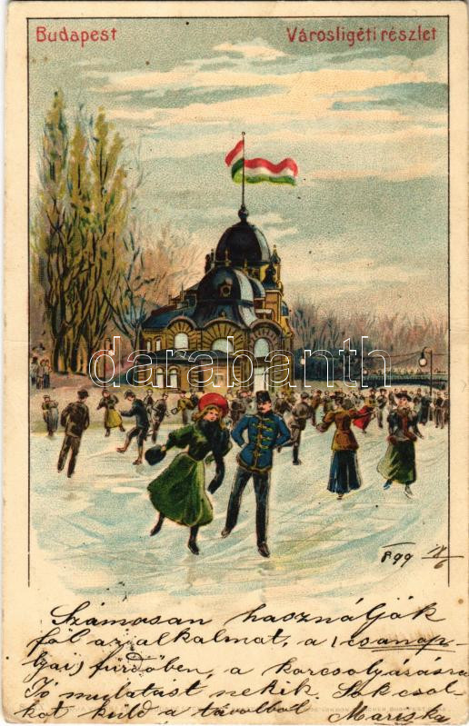 1899 (Vorläufer) Budapest XIV. Városliget, korcsolyázók a pavilonnál t... https://www.darabanth.com/de/442-Fernauktion/442.0/Ansichtskarten/Ungarn~2000005/1899-Vorlaufer-Budapest-XIV-Varosliget-korcsolyazok-a-pavilonnal-telen-magyar-zaszlo-K~II2906480