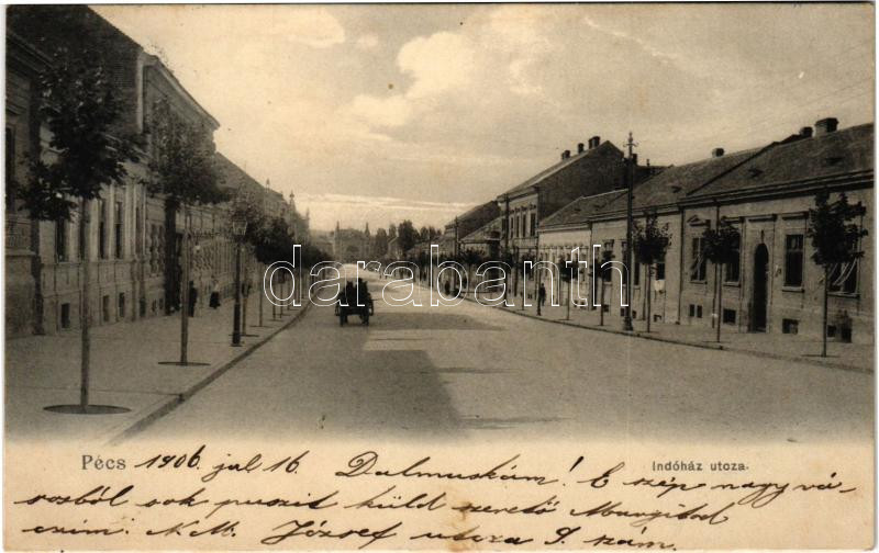 1906 Pécs, Indóház utca, vasútállomás https://www.darabanth.com/de/442-Fernauktion/442.0/Ansichtskarten/Ungarn~2000005/1906-Pecs-Indohaz-utca-vasutallomas~II2909454