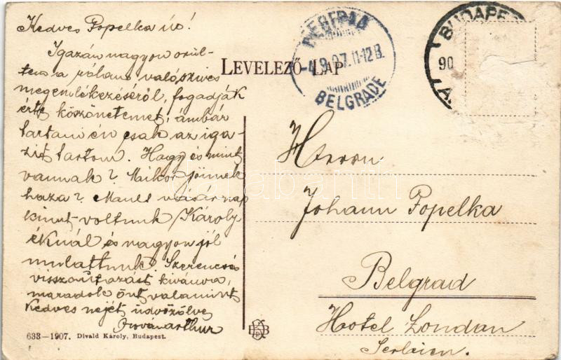 1907 Budapest V. Kossuth Lajos utca, lovashintó, Haas Fülöp és fiai, Weiss Gyula női confectio üzlete, Erdélyi cs. és kir. udvari fényképészeti műterme. Divald Károly 633-1907. (Rb)