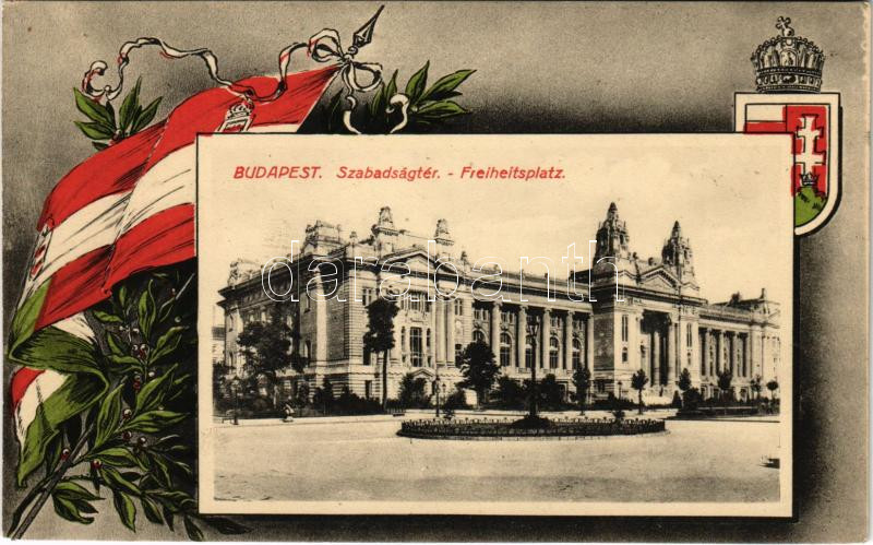 1916 Budapest V. Szabadság tér, Tőzsdepalota. Szecessziós magyar zászl... https://www.darabanth.com/de/442-Fernauktion/442.0/Ansichtskarten/Ungarn~2000005/1916-Budapest-V-Szabadsag-ter-Tozsdepalota-Szecesszios-magyar-zaszlos-es-cimeres-keret~II2906504